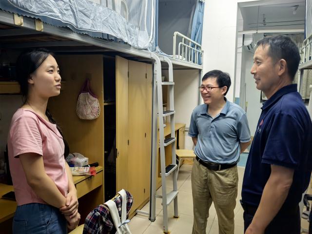 9月13日晚上,校党委常委、副校长谢花林带着对2025级新同学的深切关怀,走进蛟桥园南校区新生宿舍,与刚刚步入大学校园的同学们亲切交流,实地查看住宿条件,了解入学适应情况。院党委书记涂远武、学院辅导员谢博卿、新生班主任文艺参与走访。